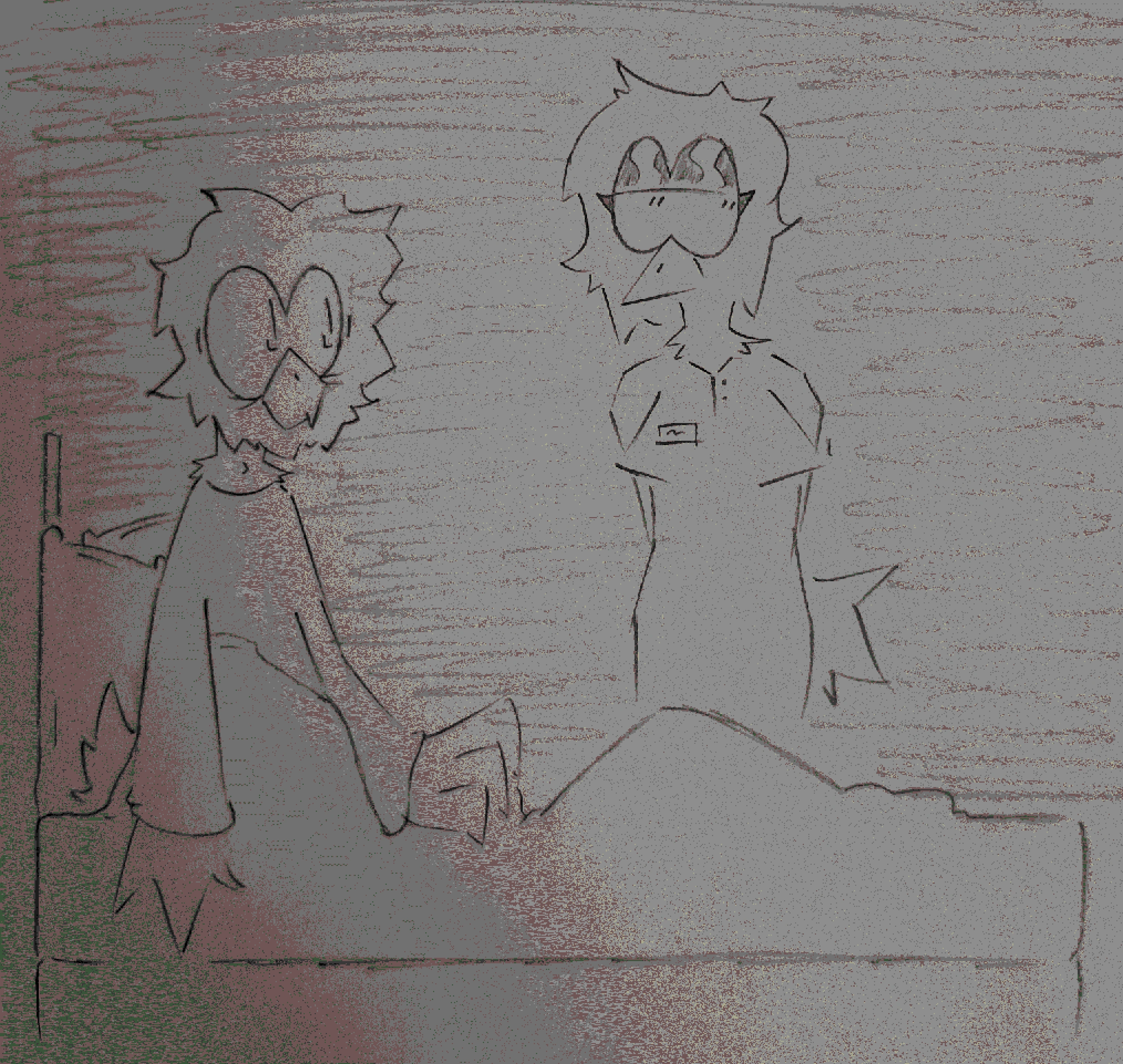 Great, yet another problem on Sherm's already long list of problems. He gripped onto his heart, feeling the slightest palpitation from what he had just heard. Realizing her mistake, the nurse would rub her forehead. "Show me your hand, please." His already clenched, winged fist unfurled, and her touch grazed his palm. Surprisingly, he felt some form of calmness overtake him. It was as though he had no reason to be afraid with her around, despite her poor choice of words just a few seconds ago. A frown drooped over her beak. "God... you're shivering."